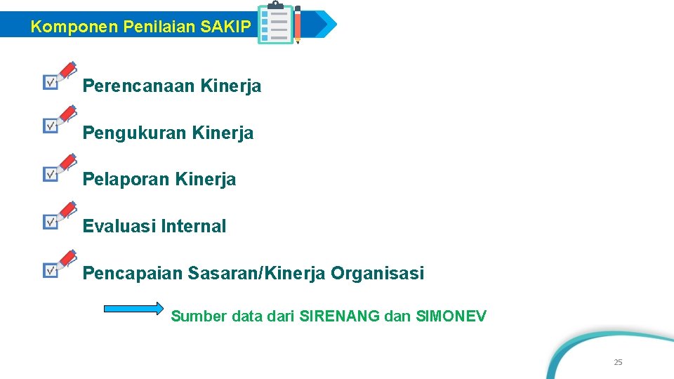 Pelaporan kinerja, evaluasi internal, dan pencapaian sasaran/kinerja.