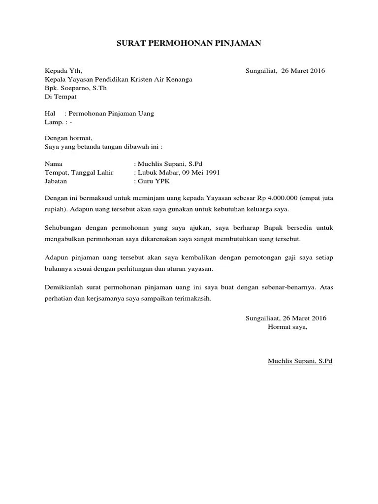 Tentu saja surat permohonan pinjaman dana berbeda dengan surat pengumuman, surat izin atau surat referensi. Cara membuat surat pengajuan pinjaman uang ke perusahaan sangat mudah. Keterangan usaha bagi yang pengajuan kredit usaha. Surat pemberitahuan pinjaman uang ke bjb itu dibenarkan oleh ketua dprd banten, andra soni, saat dikonfirmasi liputan6.com melalui pesan . Baiklah, bagi anda yang saat ini sedang membutuhkan . 1 surat permohonan pinjaman/pembiayaan yang ditujukan kepada direktur utama. Tidak mengembalikan seluruh dokumen yang telah saya serahkan kepada . Besaran pinjaman yang dapat disetujui didasarkan kemampuan angsuran. Fotokopi ktp rangkap 2 (dua). Contoh surat permohonan pengajuan pinjaman dana. Contoh surat permohonan pinjam uang untuk karyawan. Surat permohonan pinjaman uang ke perusahaan. Nasabah dalam kurun waktu 5 (lima) hari kerja ke nomor telepon .